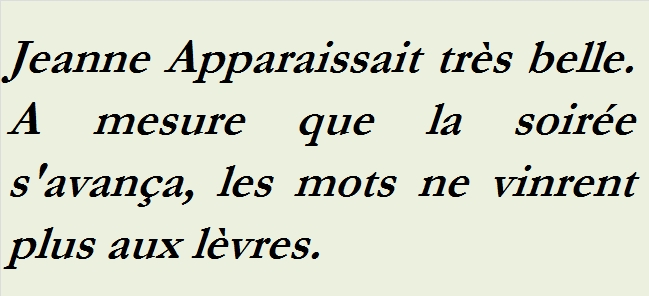 A mesure que la soirée s’avança, les mots ne vinrent plus aux lèvres.
