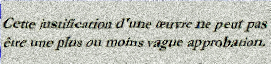 J’ai dit que justifier seulement une œuvre c’était la glorifier : mais ne voyez-vous pas qu’après l’examen critique sévèrement fait de la façon que je viens de le définir, il ne resterait qu’une goutte d’eau pure de tout l’océan littéraire, ce royaume du plus vain caprice où tous les esprits faciles du siècle nagent leur nage de parasites ; qu’une goutte d’eau pure, oui, mais intensément grosse du déluge.