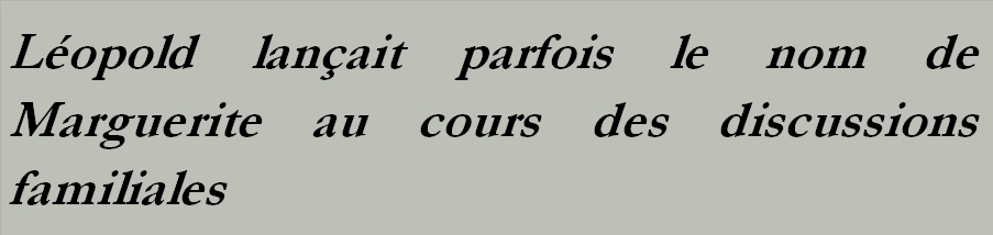 Léopold lançait parfois le nom de Marguerite au cours des discussions familiales, comme il l’avait fait certain soir pour dérouter le père Amédée.