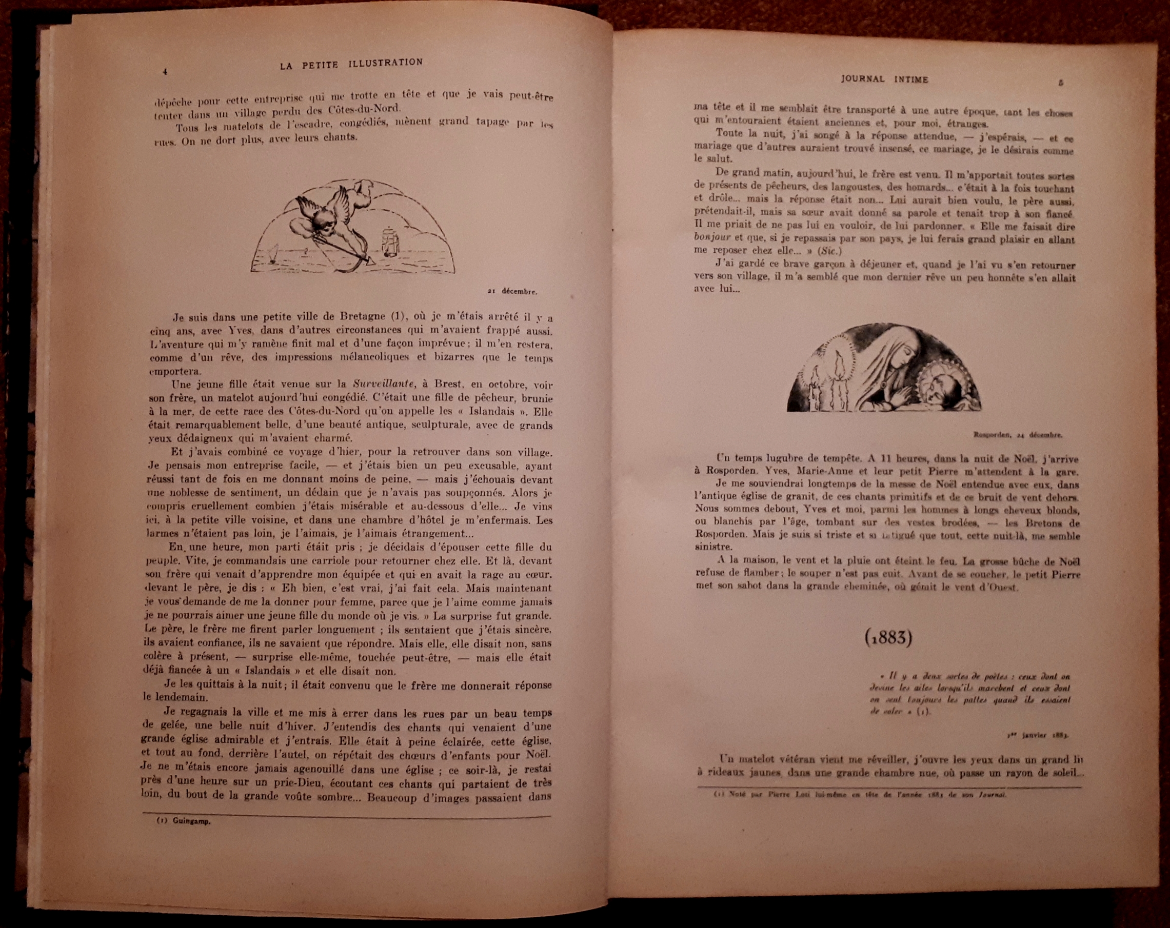 Première page dont on retrouvera une présence dans pêcheur d’Islande, et dont la fin peut, si on la croit sincère, justifier la mort du héro de cette oeuvre qui fut le grand succès de Pierre Loti.