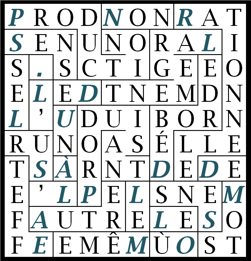 Dans une grille de 10 X 10, la définition d’un mot (commençant par un P et comportant 5 lettres.)
