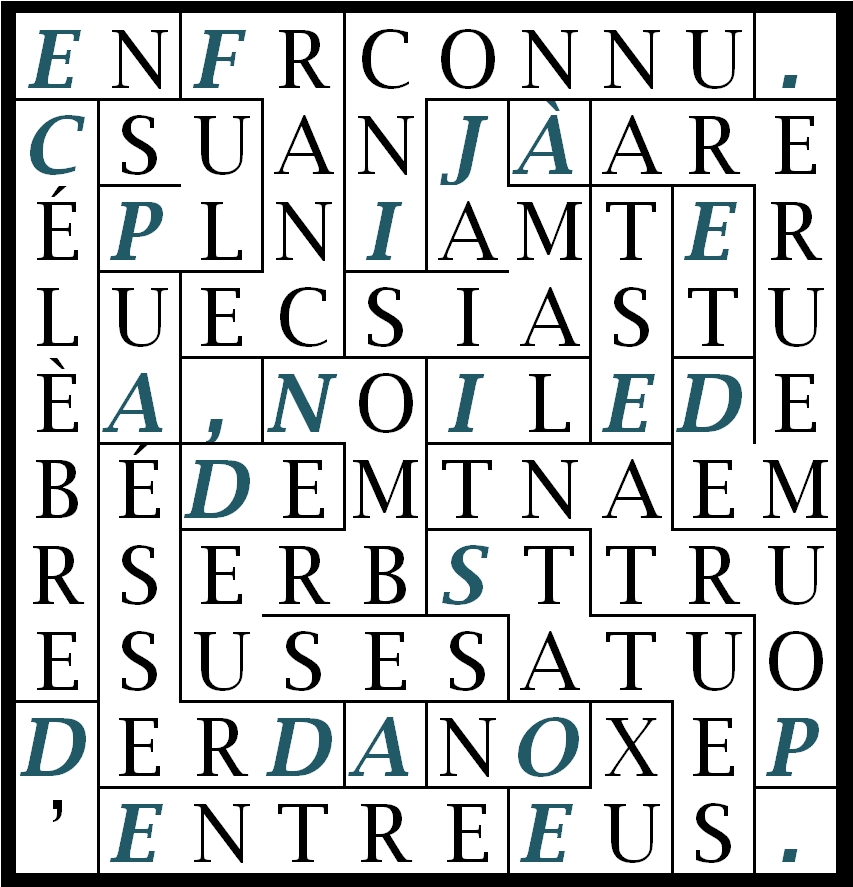 Dans une grille de 10 X 10, la définition d’un mot (commençant par un S et comportant 6 lettres.)