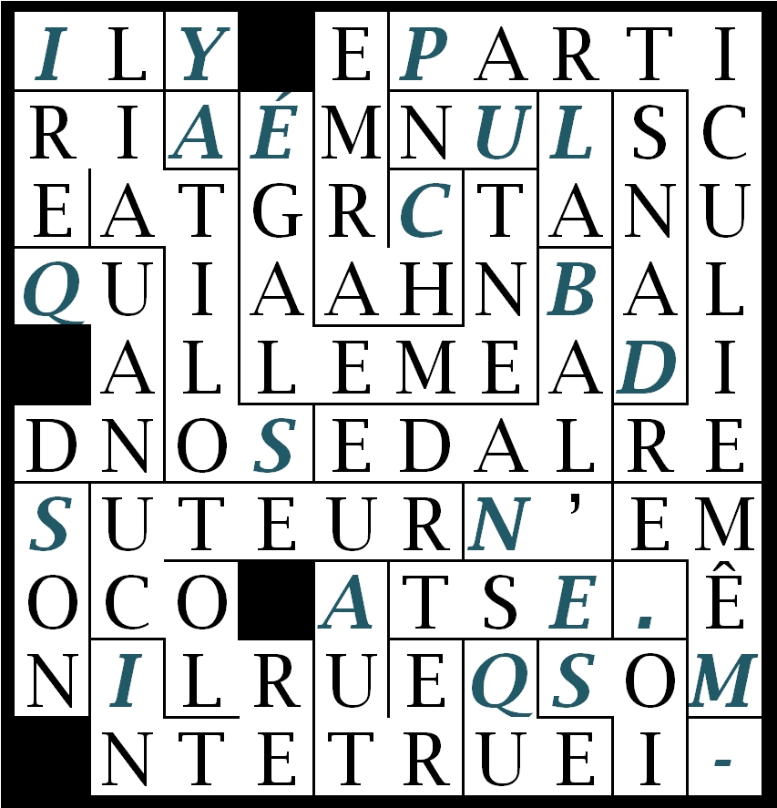 ** Rechercher la phrase découverte dans la grille sur internet… (aboutissant le plus souvent sur babelio.com) permet de découvrir le nom de son auteur, ainsi que de lire cet extrait dans une version plus longue.