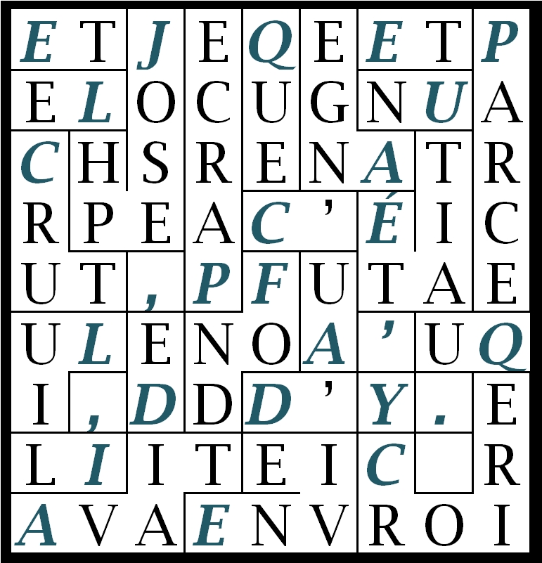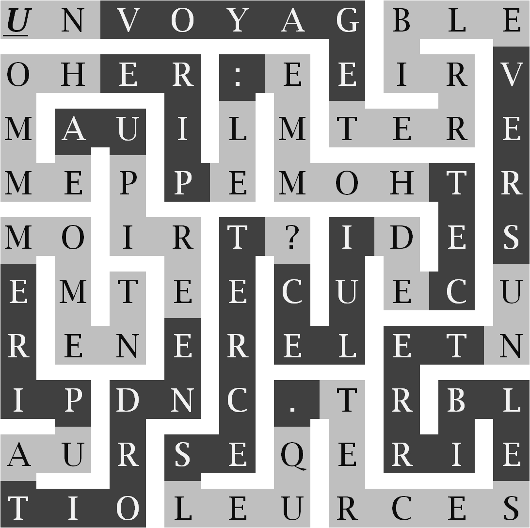 ** Rechercher la phrase découverte dans la grille sur internet… (aboutissant le plus souvent sur babelio.com) permet de découvrir le nom de son auteur, ainsi que de lire cet extrait dans une version plus longue.