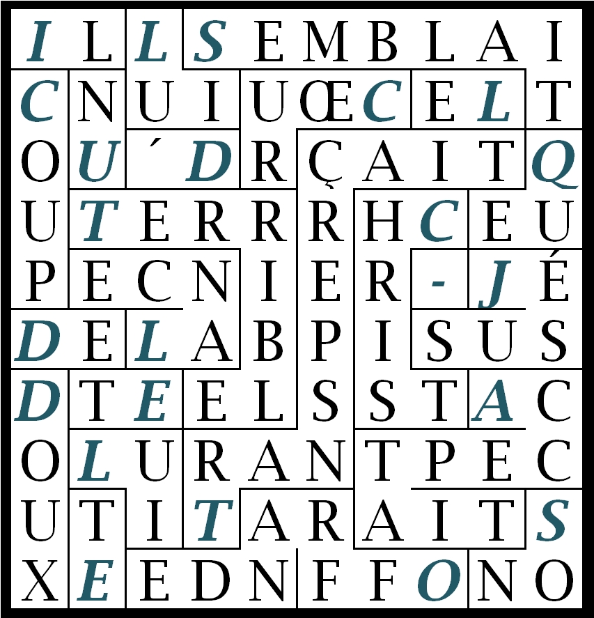 ** Rechercher la phrase découverte dans la grille sur internet… (aboutissant le plus souvent sur babelio.com) permet de découvrir le nom de son auteur, ainsi que de lire cet extrait dans une version plus longue.