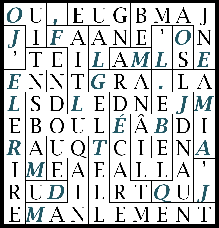 ** Rechercher la phrase découverte dans la grille sur internet… (aboutissant le plus souvent sur babelio.com) permet de découvrir le nom de son auteur, ainsi que de lire cet extrait dans une version plus longue.