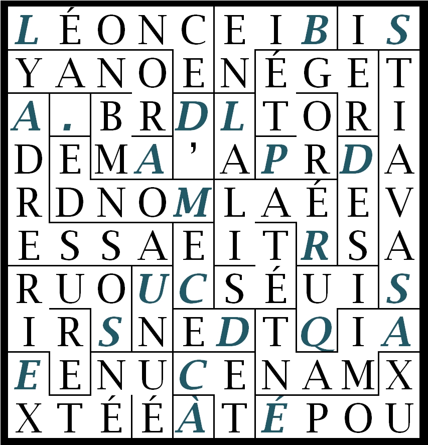 ** Rechercher la phrase découverte dans la grille sur internet… (aboutissant le plus souvent sur babelio.com) permet de découvrir le nom de son auteur, ainsi que de lire cet extrait dans une version plus longue.