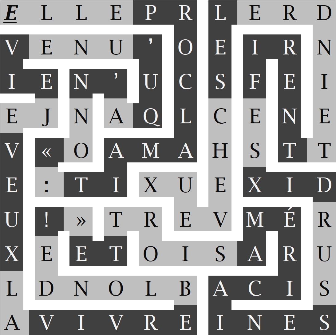 ** Rechercher la phrase découverte dans la grille sur internet… (aboutissant le plus souvent sur babelio.com ) permet de découvrir le nom de son auteur, ainsi que de lire cet extrait dans une version plus longue. (Si tu arrives sur googlebook, ou numilog, il est probable que tu pourras lire plus d’une page)