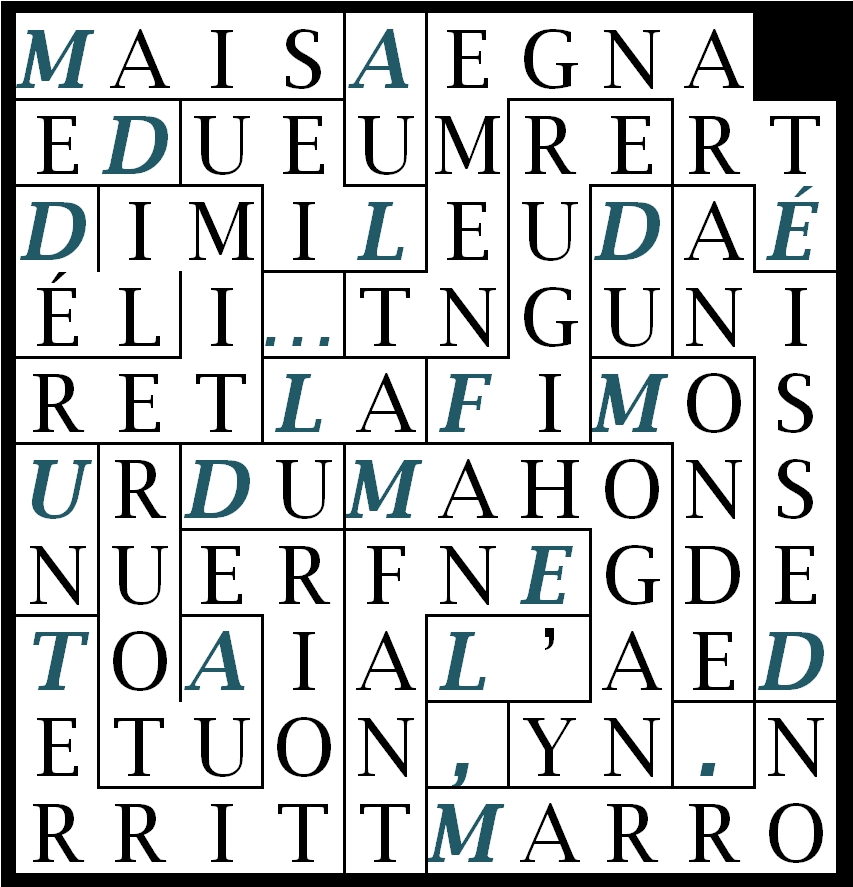 ** Rechercher la phrase découverte dans la grille sur internet… (aboutissant le plus souvent sur babelio.com ) permet de découvrir le nom de son auteur, ainsi que de lire cet extrait dans une version plus longue. (Si tu arrives sur googlebook, ou numilog, il est probable que tu pourras lire plus d’une page)