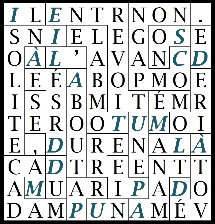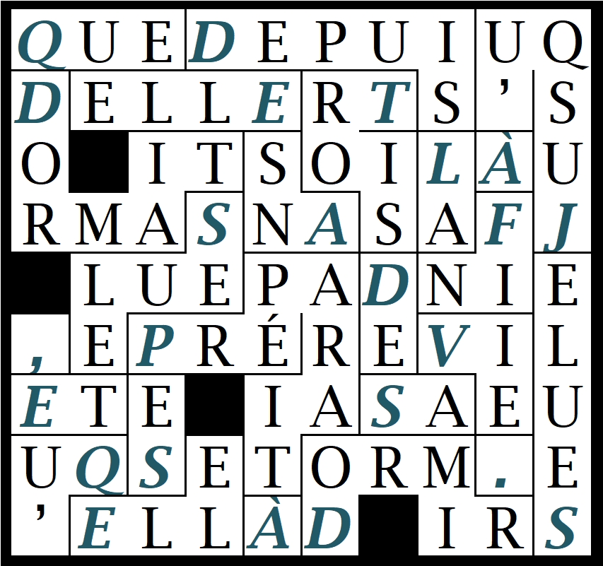 ** Rechercher la phrase découverte dans la grille sur internet… (aboutissant le plus souvent sur babelio.com ) permet de découvrir le nom de son auteur, ainsi que de lire cet extrait dans une version plus longue. (Si tu arrives sur googlebook, ou numilog, il est probable que tu pourras lire plus d’une page)