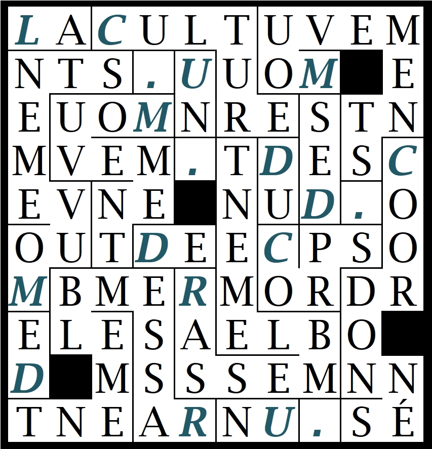 ** Rechercher la phrase découverte dans la grille sur internet… (aboutissant le plus souvent sur babelio.com ) permet de découvrir le nom de son auteur, ainsi que de lire cet extrait dans une version plus longue. (Si tu arrives sur googlebook, ou numilog, il est probable que tu pourras lire plus d’une page)