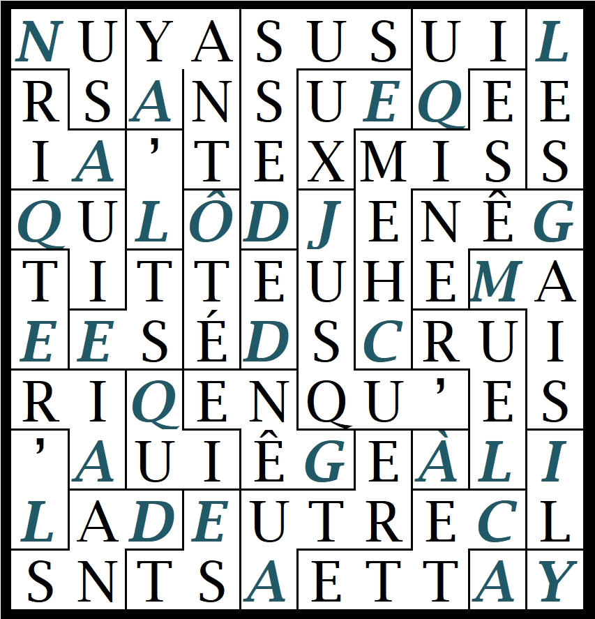 Pour cela, comme les mois précédents, il s’agit de déchiffrer dans une grille une phrase qui provient d’une œuvre de cet auteur.