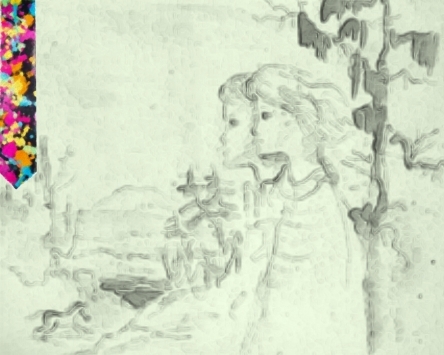 (Pour obtenir ce résultat, dans le sous menu « outils de dessin » j’ai réglé l’épaisseur du trait au maximum et l’opacité à 25%. On peut également tracer un simple trait à travers les lettres.)