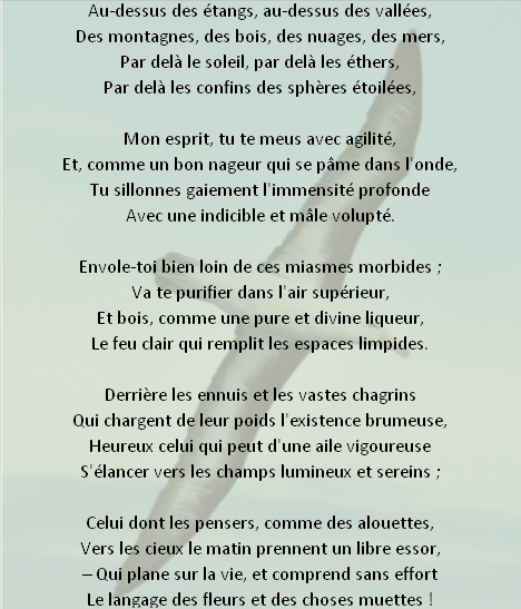 Le poème dont provient cet extrait est une sorte de redite tissée sur le célébrissime Albatros, l’auteur y poursuit la métaphore de l’oiseau/poète