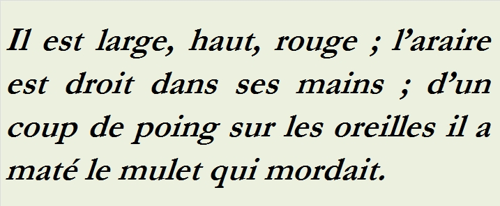 IL EST LARGE HAUT ROUGE L ARAIRE EST DROIT DANS SES MAINS D UN COUP DE POING SUR LES OREILLES IL A MATE LE MULET QUI MORDAIT-txt