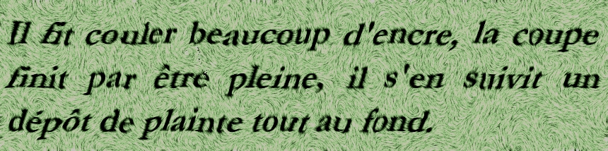 [Dictionnaire subjectif ] dépot – aunryz 12 septembre 201512 septembre 2015 Aunryz aunryz, dépot, les mots liés coupe, dépot, encre, fond, plainte En lecture plus lente (cliquer pour agrandir) —- Pour y voir un peu plus clair (parcours) —- à cliquer pour lire à l’occidental (Je dois avouer une source : chez Anna, ici ) Il fit couler beaucoup d’encre, la coupe finit par être pleine, il s’en suivit un dépôt de plainte tout au fond. Envie de partager ... Cliquer pour partager sur X(ouvre dans une nouvelle fenêtre) X Cliquez pour partager sur Facebook(ouvre dans une nouvelle fenêtre) Facebook J’aime chargement…