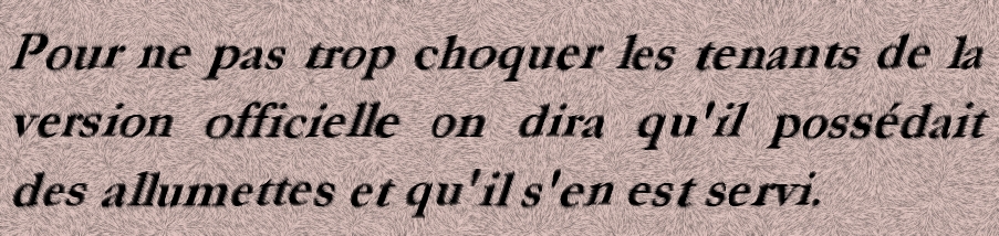 Pour ne pas trop choquer les tenants de la version officielle on dira qu’il possédait des allumettes et qu’il s’en est servi.