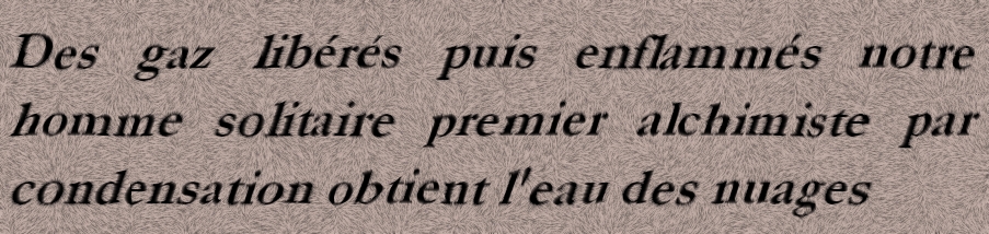Des gaz libérés puis enflammés notre homme solitaire premier alchimiste par condensation obtient l’eau des nuages.