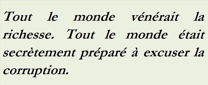« Tout le monde vénérait la richesse. Tout le monde était secrètement préparé à excuser la corruption. »