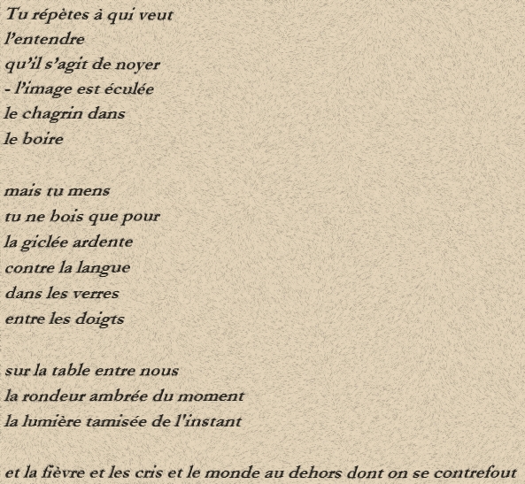 et la fièvre et les cris et le monde au dehors dont on se contrefout