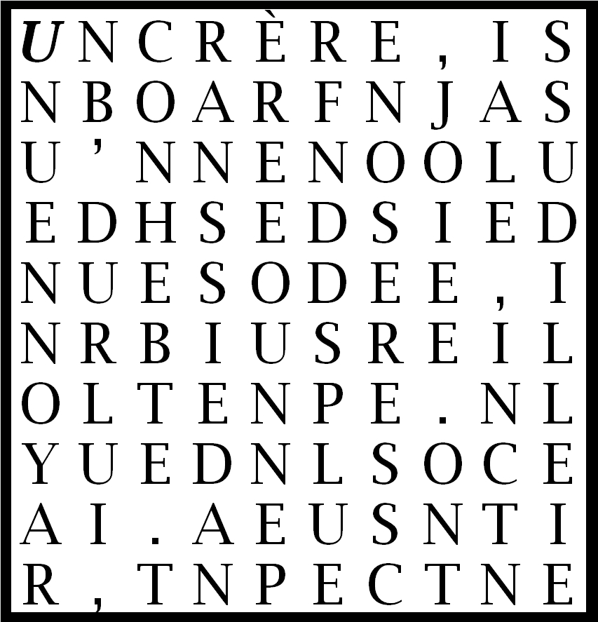 Dans une grille de 10 X 10, la définition d’un mot (commençant par un S et comportant 7 lettres.)
