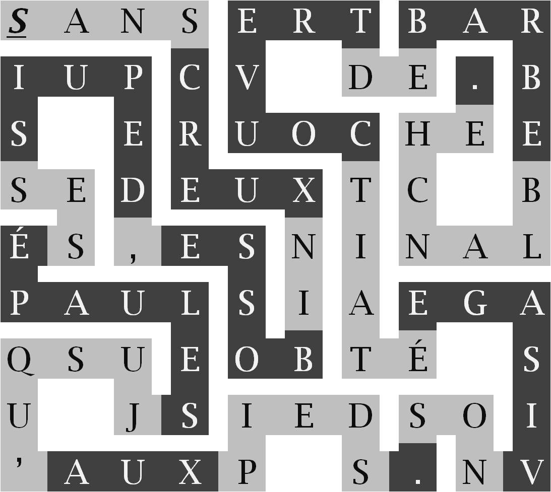 … sans creux ni bosse,depuis ses épaules jusqu’aux pieds. Son visage était couvert de barbe blanche. »