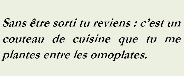 SANS ETRE SORTI TU REVIENS C EST UN COUTEAU DE CUISINE QUE TU ME PLANTES ENTRE LES OMOPLATES-s