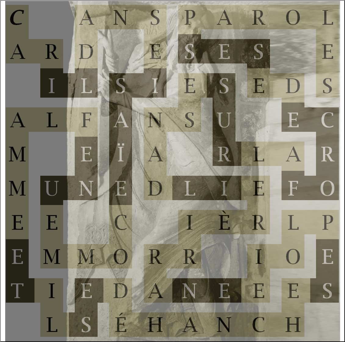 Ce serait dans l’abbatiale de Souillac, en tournant le dos à la nef qui file sous ses coupoles vers la grande conque du choeur, et s’arrêter avant de sortir, les yeux dégringolant le long de la grande pile grouillante de personnages et d’animaux que l’on nomme trumeau, comme si on l’avait tourné, rendu vertical pour épauler notre vision de la porte, nous retenir dans la contemplation de cette chute souple de motifs avant que nous retournions dans le monde.