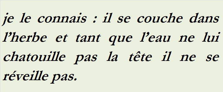 Sortir des murs. Quelle joie! Pourquoi ne l’ai–je pas fait plus tôt? Il suffit de pousser la porte, de franchir le seuil, de prendre un air détaché. Je suis détaché. Sans lien, libre et en marche. Bon, d’accord, j’ai eu de la chance. Si l’infirmier n’avait pas été distrait par je ne sais quoi, s’il n’avait pas oublié de donner quelques tours de clés aux portes qui m’enfermaient, jamais je n’aurais pu m’enfuir de cette prison–hôpital. J’ai saisi ma chance et j’ai commencé à marcher dans la campagne. Dire la joie en moi, je ne saurai. Dire cette odeur de menthe foulée à mes pieds, je ne saurai. Dire mon corps, retrouver le plaisir de bouger, je ne saurai. Je ne sais que commencer à vivre. Alors je marche et je vis. Je cours, je vole même. Il faut mettre le plus de distance possible entre ces murs et moi. Fini le cauchemar. Je ne suis pas bien malin, je le sais, mais vivant parmi les vivants, j’ai le droit de vivre. Je me fixe un but: aller en France, retrouver ma famille adoptive. Ce sont eux qui m’ont placé ici mais ils croyaient bien faire. Ils ne savaient pas qu’on nous traitait comme des chiens. Qu’on se livrait à des expériences sur nous. Une infirmière a expliqué un jour à un journaliste que c’étaient des psychotropes qu’on nous administrait. Je marche. Je sens l’odeur de l’herbe coupée. J’ai un peu faim. Un grand sourire dans mon ventre vide.