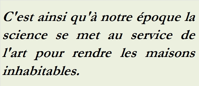 C’est ainsi qu’à notre époque la science se met au service de l’art pour rendre les maisons inhabitables.
